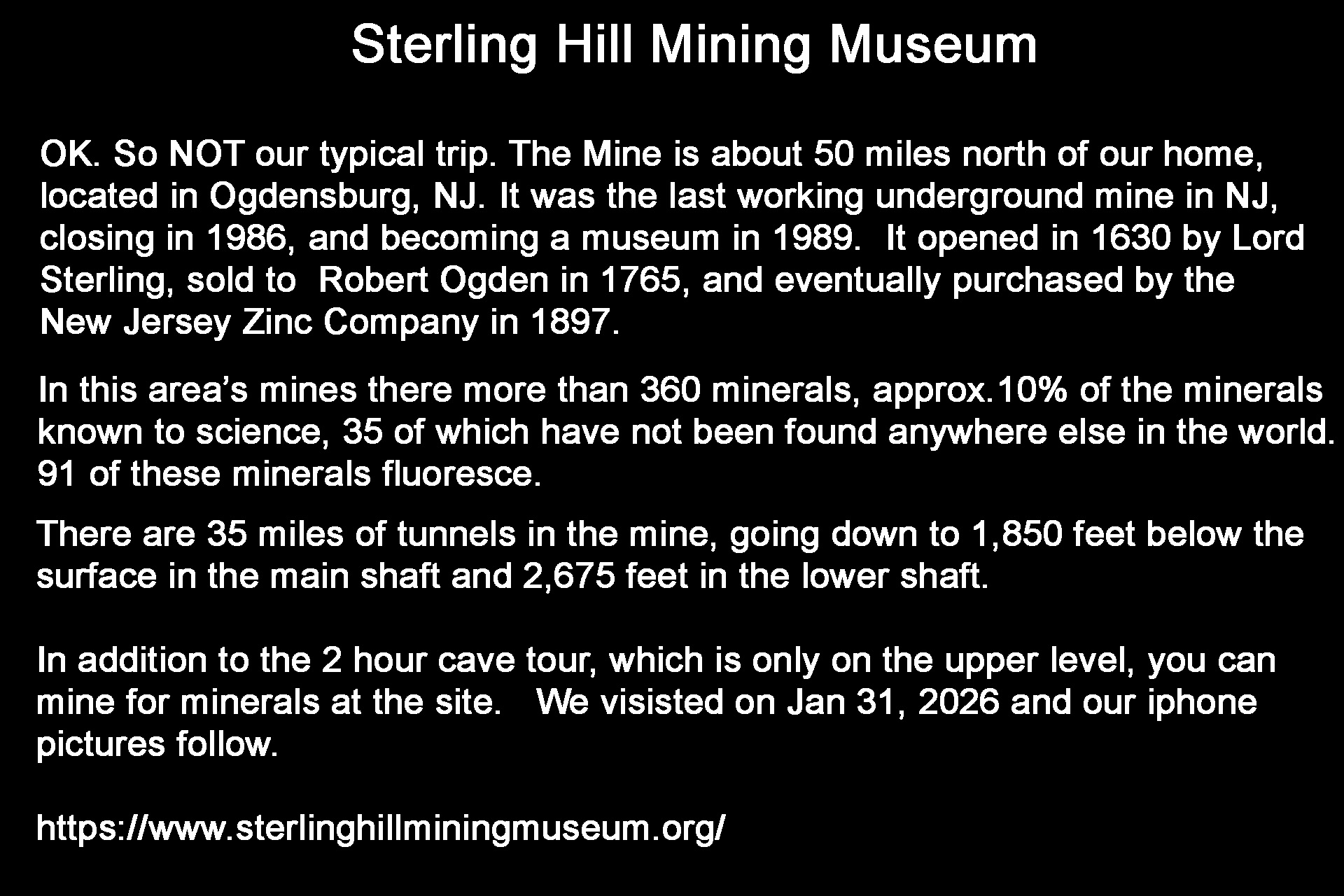 Sterling Hill Mining Museum - NJ- January 2026